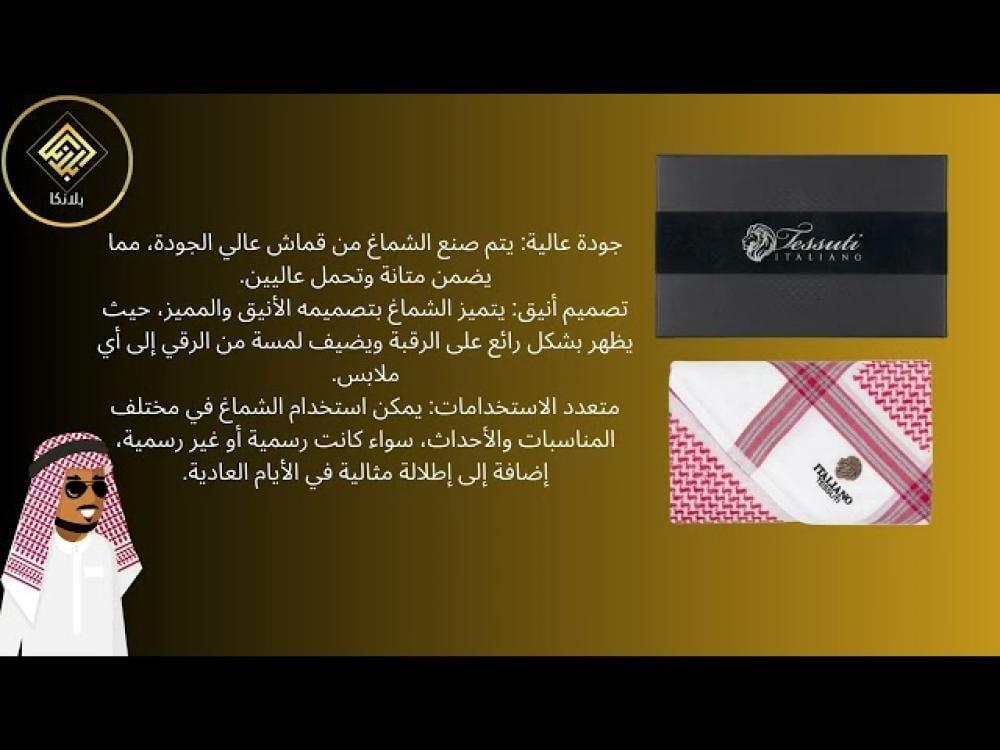 - تصميم أنيق: يتميز الشماغ بتصميمه الأنيق والمميز، حيث يظهر بشكل رائع على الرقبة ويضيف لمسة من الرقي إلى أي ملابس.